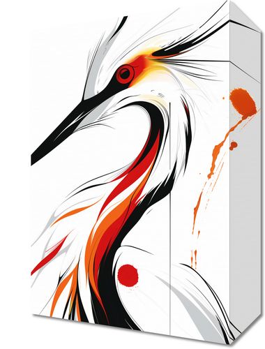 Obraz z serii motywy wschodnie zatytułowany Bocian to dynamiczna i ekspresyjna interpretacja bociana, wykonana w stylu nowoczesnej abstrakcji. Ptak przedstawiony jest za pomocą ostrych, płynnych linii i silnych kontrastów kolorystycznych, gdzie biel, czerń i intensywne odcienie czerwieni przenikają się, tworząc uczucie ruchu i energii. Ogień w oku bociana i płomienne akcenty na jego upierzeniu sugerują pasję i życiową siłę, a spontaniczne plamy i kropki dodają dziełu artystycznego zacięcia. Obraz emanuje siłą i wolnością, idealny do wnętrz, które chcą wyrazić dynamizm i siłę natury, doskonały dla przestrzeni pełnych energii jak nowoczesne biura, kreatywne pracownie, lub jako wyrazisty element dekoracyjny w domowym salonie.