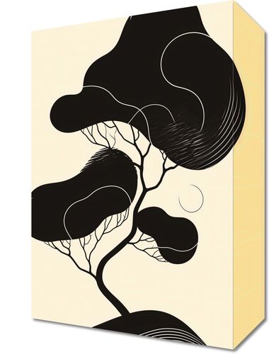 Obraz z serii minimalistyczne zatytułowany Echo Wiatru. Przedstawia abstrakcyjne drzewo z masywnymi, dynamicznymi kształtami przypominającymi chmury lub potoki wiatru, które opływają jego smukły pień i gałęzie. Całość utrzymana jest w monochromatycznej palecie barw, co wzmacnia siluetę i nadaje dramatycznego charakteru. Obraz ten może być interpretacją siły natury i jej nieustającej interakcji z żywymi organizmami. Idealny do nowoczesnych przestrzeni, które doceniają sztukę inspirowaną naturą, będąc zarówno odważnym oświadczeniem, jak i subtelnym nawiązaniem do sił przyrody działających wokół nas.