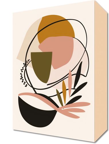 Obraz z serii minimalistyczne zatytułowany Inspiracja. Wyróżnia się zdecydowanym połączeniem kształtów i barw, które przenoszą widza w świat abstrakcji inspirowanej naturą. Utrzymany w ciepłych tonacjach pomarańczy, różu, kremu i zieleni, obraz przemawia do miłośników subtelnego designu, gdzie kolor i forma łączą się w unikalną harmonię. Dynamiczne linie i organiczne kształty z roślinnymi motywami tworzą wzór, który jest zarówno nowoczesny, jak i ponadczasowy. Ten obraz może stanowić inspirujący dodatek do wnętrz mieszkalnych lub komercyjnych, a jego uniwersalny charakter sprawdzi się w różnorodnych przestrzeniach od skandynawskich po boho i współczesne.