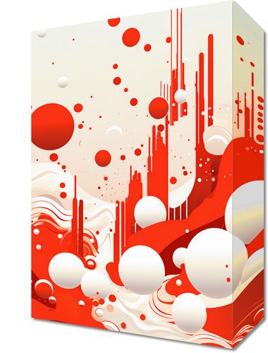 Obraz z serii abstrakcja zatytułowany Krwiście Czerwone Wibracje. Energetyczne kule i linie w tonacjach czerwieni i bieli tworzą wizualną symfonię, która pobudza zmysły. Gładkie fale łączą się z ostrymi, pionowymi liniami, tworząc uczucie ruchu i pulsacji. Czerwone krople unoszą się jak planety w kosmicznej przestrzeni, dodając obrazowi głębi i dynamiki. Jego odważny i nowoczesny design dodaje nuty świeżości i innowacyjności. Doskonale pasuje do nowoczesnych biur, studiów projektowych oraz przestrzeni artystycznych, gdzie kreatywność spotyka się z technologią.