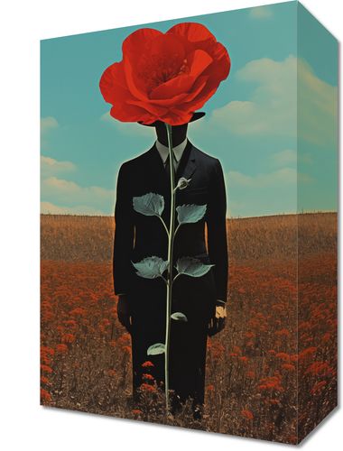 Obraz z serii abstrakcja zatytułowany Obserwator zza Maku. Ten obraz przedstawia surrealistyczny obraz człowieka z głową w formie rozkwitającego czerwonego maku, stojącego na polu pełnym kwiatów tej samej rośliny. Kompozycja gra na kontraście między ludzką postacią a bujnością natury, podkreślając połączenie człowieka z otaczającym go światem. Idealny dla przestrzeni szukających głębi artystycznej i wizualnej prowokacji, ten plakat będzie doskonałym dodatkiem do nowoczesnych salonów, galerii sztuki czy przestrzeni kreatywnych, gdzie może inspirować i wywoływać refleksję.
