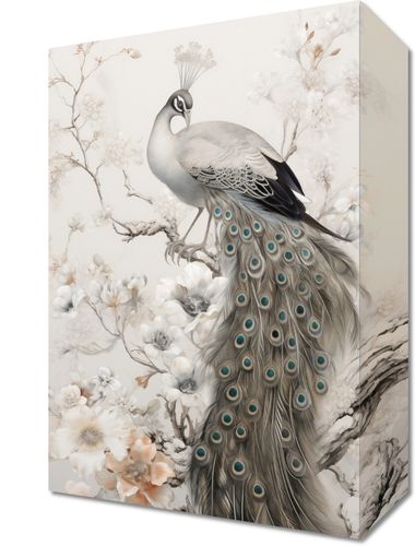 Obraz z serii wnętrza zatytułowany Pawia Gracja. Ta grafika przedstawia majestatycznego pawia spoczywającego na gałęzi, otoczonego przez delikatne kwiaty magnolii. Kunsztownie oddane detale piór i kwiatów w pastelowej palecie barw tworzą uczucie spokoju i harmonii. Obraz ten jest idealny dla miłośników piękna natury i sztuki, doskonale nadaje się do wnętrz o klasycznej i eleganckiej estetyce, takich jak salon, sypialnia, a także jako wyjątkowy element dekoracyjny w spa lub miejscach relaksacji.