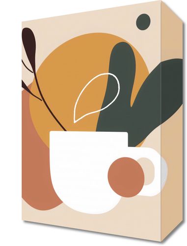 Obraz z serii minimalistyczne zatytułowany Ranna Kawka. Ta grafika to subtelne połączenie codziennego przedmiotu – kubka kawy – z abstrakcyjnymi elementami i roślinnymi motywami, co razem tworzy ciepłą i przyjemną kompozycję w odcieniach ochry, brązu i zieleni. Przenikające się kształty i delikatne linie nadają pracom niemal zenową jakość. Obraz ten doskonale uzupełni przestrzeń kuchenną, jadalnię lub domową kawiarnię, wprowadzając element spokoju i przytulności do porannego rytuału. Może także dodać ciepła i domowego charakteru do biur, zapewniając relaksującą atmosferę.
