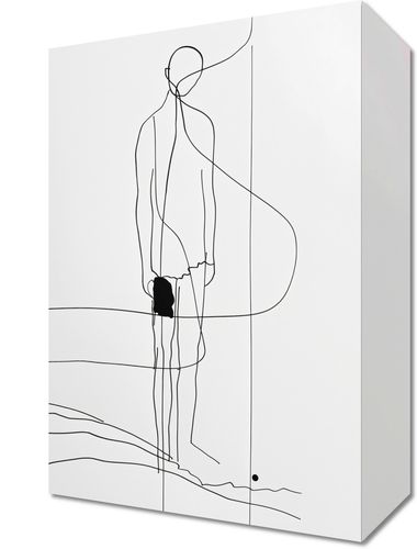 Obraz z serii minimalistyczne zatytułowany Samotna Wędrówka. Obraz przedstawia postać człowieka przedstawionego za pomocą zredukowanych linii, która wyraża elegancję i prostotę. Postać z dużym plecakiem jest uchwycona od tyłu, sugerując podróż lub długą wędrówkę. Linie przypominające krajobraz na dole obrazu i pojedynczy czarny punkt mogą symbolizować dalekie cele lub przemyślenia wędrowca. Ten minimalistyczny rysunek wprowadzi do wnętrza atmosferę refleksji i poszukiwania, będąc doskonałym wyborem do przestrzeni, które inspirują do myślenia i odkrywania, takich jak gabinety, studia czy nawet miejsca publiczne, gdzie sztuka ma za zadanie pobudzać do przemyśleń.