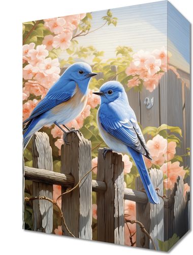 Obraz z serii natura zatytułowany Wiosna u Bram to zachwycająca ilustracja, przedstawiająca dwa błękitne ptaki, które wydają się prowadzić spokojną rozmowę, siedząc na starym drewnianym płocie. Tło kompozycji zdobią delikatne, różowe kwiaty, które tworzą romantyczny i spokojny nastrój. Subtelne światło przenika przez liście, delikatnie rozświetlając scenę i podkreślając intensywny błękit upierzenia ptaków, co przyciąga wzrok i budzi ciepłe uczucia. Ten obraz sprawdzi się jako element dekoracyjny w każdym pomieszczeniu, wprowadzając atmosferę wiosennej świeżości i naturalnego piękna. Idealny dla miłośników przyrody i delikatnej, artystycznej ekspresji.
