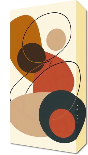 Obraz z serii minimalistyczne zatytułowany Geometria Harmonii. Na tej grafice widzimy grę prostych i zaokrąglonych kształtów splecionych w taniec geometrycznych form. Ciepłe odcienie musztardowego żółcieni, rdzawego pomarańczu, ciemnej czekolady i głębokiego granatu mieszają się, tworząc spójną i przyjemną dla oka paletę. Subtelne linie przewijają się przez kompozycję, dodając lekkości i głębi, a małe kropki akcentują delikatność całości.Ten obraz doskonale odnajdzie się w nowoczesnych i minimalistycznych wnętrzach, gdzie będzie stanowił spokojny, ale interesujący element dekoracyjny. Idealny do salonów, gabinetów czy poczekalni, gdzie może wprowadzić atmosferę wyciszenia oraz estetycznej przyjemności.