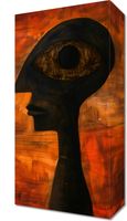 Obraz z serii abstrakcja zatytułowany Głęboki Wgląd przedstawia enigmatyczną sylwetkę o ludzkiej formie z dominującym, przeskalowanym okiem w miejscu głowy, wpatrującym się w widza z niezwykłą intensywnością. Tło obrazu jest abstrakcyjne, z bogatymi pociągnięciami pędzla w ciepłych odcieniach czerwieni i pomarańczy, sugerujące płomienne otoczenie lub burzliwe emocje. Sylwetka postaci jest zarysowana w głębokim czernią, co kontrastuje z jaskrawym tłem, a tekstura przypominająca sieć w obrębie oka może symbolizować skomplikowaną sieć ludzkich doświadczeń i percepcji. Dzieło to może wywoływać rozważania na temat ludzkiej świadomości i głębszego znaczenia bycia obserwatorem. Ten obraz będzie pasował do przestrzeni, które cenią głęboką myśl i filozoficzne dyskusje, takich jak biblioteki, studia artystyczne lub prywatne gabinety.