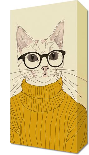 Obraz z serii abstrakcja zatytułowany Intelektualista to urocze przedstawienie kota ubranego w stylowy, żółty golf, dopełnionego okularami w intelektualnym stylu. Ilustracja charakteryzuje się subtelną linią i pastelową kolorystyką, co nadaje jej delikatny i stylowy wygląd. Okulary z grubymi oprawkami nadają kotu wyraz powagi i inteligencji, podczas gdy żółty sweter wskazuje na wyrafinowany gust. Całość kompozycji jest zabawna, ale jednocześnie elegancka, sprawiając, że obraz ten jest idealny dla tych, którzy cenią sobie humor połączony z klasą. Doskonale nadaje się do nowoczesnych przestrzeni mieszkalnych, pokoi młodzieżowych, biur lub jako dekoracja w księgarniach i kawiarniach.