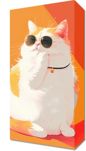 Obraz z serii abstrakcja zatytułowany Lizu Lizu przedstawia zabawnie ludzki portret białego kota w okularach przeciwsłonecznych, który zamyślenie przyciera łapę do pyszczka, jakby zastanawiał się nad życiem. Jego biała, puszysta sierść kontrastuje z tłem w żywych odcieniach pomarańczu, co nadaje kompozycji ciepły i słoneczny charakter. Okulary przeciwsłoneczne dodają kociej postaci nonszalanckiego, relaksującego stylu, a ich refleksy świetlne przyciągają uwagę. Uroczy obrazek jest pełen humoru i stylu, idealny do dodania osobowości i lekkości do każdej przestrzeni, od domowego biura po salon.