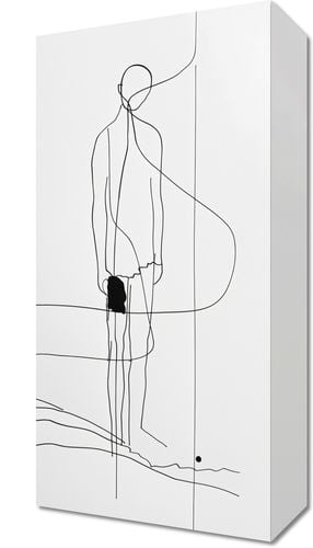 Obraz z serii minimalistyczne zatytułowany Samotna Wędrówka. Obraz przedstawia postać człowieka przedstawionego za pomocą zredukowanych linii, która wyraża elegancję i prostotę. Postać z dużym plecakiem jest uchwycona od tyłu, sugerując podróż lub długą wędrówkę. Linie przypominające krajobraz na dole obrazu i pojedynczy czarny punkt mogą symbolizować dalekie cele lub przemyślenia wędrowca. Ten minimalistyczny rysunek wprowadzi do wnętrza atmosferę refleksji i poszukiwania, będąc doskonałym wyborem do przestrzeni, które inspirują do myślenia i odkrywania, takich jak gabinety, studia czy nawet miejsca publiczne, gdzie sztuka ma za zadanie pobudzać do przemyśleń.