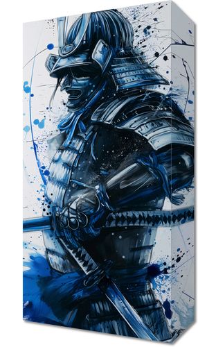 Obraz z serii motywy wschodnie zatytułowany Samuraj w Błękicie. Ta dynamiczna grafika przedstawia postać samuraja w pełnym rynsztunku bojowym, uchwyconego w chwili akcji. Intensywne odcienie niebieskiego i rozbryzgi farby nadają obrazowi wrażenie ruchu i żywiołowości. Postać samuraja, tradycyjnie kojarzona z honorem i dyscypliną, jest przedstawiona w nowoczesnym kontekście, co nadaje pracy współczesny charakter. Obraz jest łączeniem historii i nowoczesności, idealnym dla wnętrz inspirowanych dalekowschodnią kulturą, a także jako mocny akcent w minimalistycznych lub industrialnych przestrzeniach.