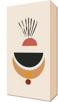 Obraz z serii boho zatytułowany Spójna Refleksja.Grafika ukazuje abstrakcyjną kompozycję geometrycznych kształtów w spójnej, ciepłej palecie barw, sugerującą delikatność i równowagę. Cechą charakterystyczną są wydłużone, smukłe linie wychodzące z półkola na górze, które mogą przypominać promienie słońca czy roślinne motywy. Ten obraz doskonale wpasuje się w nowoczesne i minimalistyczne przestrzenie, takie jak jadalnie, salony, a nawet kreatywne przestrzenie pracy, gdzie może stanowić spokojny punkt skupienia i inspirować do przemyśleń.