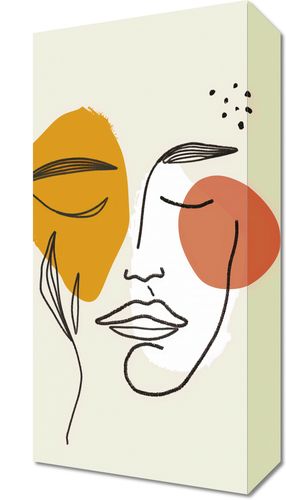 Obraz z serii boho zatytułowany Szept Przestrzeni.Grafika przedstawia abstrakcyjne przedstawienie twarzy, które łączy linearną elegancję z organicznymi kształtami i pastelowymi akcentami kolorystycznymi. Proste linie kreślą spokojne, ale wyraziste kontury twarzy, podczas gdy geometryczne i abstrakcyjne formy w odcieniach pomarańczu i żółci nakładają się, tworząc iluzję głębi i ciepła. Grupa małych czarnych kropek nad głową dodaje element tajemniczości. To dzieło sztuki wnoszące do wnętrza element introspekcji i spokoju, jest idealne dla przestrzeni, które szukają spokojnego akcentu artystycznego. Doskonale nadaje się do umieszczenia w przestronnych, jasnych salonach, przytulnych sypialniach czy medytacyjnych kącikach, wprowadzając atmosferę kontemplacji i spokoju ducha.