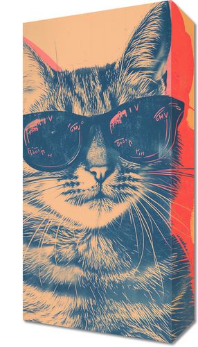 Obraz z serii abstrakcja zatytułowany Trendsetter. Na obrazie widzimy portret kota w stylowych okularach przeciwsłonecznych, z refleksami na soczewkach, które dodają mu tajemniczego uroku. Tło w odcieniach ciepłego różu i chłodnego niebieskiego nadaje kompozycji wibracyjny, niemal retro charakter. Grafika ta jest zabawnym, lecz wyrafinowanym akcentem dla każdego wnętrza, od domowego biura po salon. Idealny dla miłośników zwierząt i mody, a także jako lekki, humorystyczny element w przestrzeniach kreatywnych i galeriach sztuki.