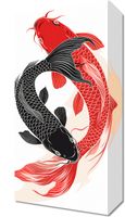 Obraz z serii motywy wschodnie zatytułowany Yin i Yang Koi to wyrafinowana kompozycja przedstawiająca dwie ryby koi w dynamicznym, zakręconym ułożeniu, co symbolizuje równowagę i harmonię. Ryby, jedna w odcieniach głębokiej czerwieni, a druga w czerni z białymi akcentami, są zaprojektowane z wyszukanym detalem, podkreślając eleganckie linie i wzory łusek. Tło jest czyste i spokojne, co dodatkowo akcentuje ruch i żywiołowość ryb. Ta sztuka doskonale nadaje się do dekoracji wnętrz o tematyce zen lub jako spokojny akcent w nowoczesnych, minimalistycznych przestrzeniach, takich jak salon, spa, czy też miejsce przeznaczone do medytacji i relaksu.