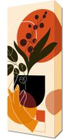 Obraz z serii minimalistyczne zatytułowany Dotyk Naturalności. Artystyczna kompozycja łączy w sobie organiczne i geometryczne formy, tworząc ciepłą, harmonijną całość. Dłoń delikatnie trzymająca roślinę symbolizuje połączenie człowieka z naturą, podczas gdy zestawienie kolorów ziemi odzwierciedla naturalne piękno. Kompozycja w różnych odcieniach pomarańczy i zieleni na jasnym tle wywołuje uczucie spokoju i prostoty.Ten obraz jest idealny dla przestrzeni, które cenią związek z naturą i minimalistyczne podejście do sztuki. Doskonale wpasuje się w stylowe salony, ciche zakątki do odpoczynku, przytulne sypialnie lub jasne biura. Doda każdej przestrzeni subtelnego uroku i naturalnego spokoju.