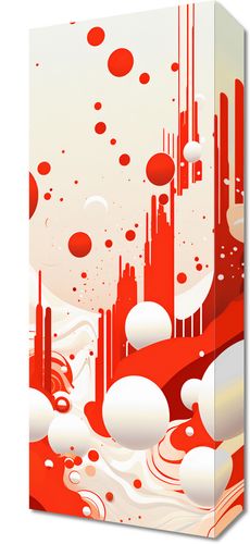 Obraz z serii abstrakcja zatytułowany Krwiście Czerwone Wibracje. Energetyczne kule i linie w tonacjach czerwieni i bieli tworzą wizualną symfonię, która pobudza zmysły. Gładkie fale łączą się z ostrymi, pionowymi liniami, tworząc uczucie ruchu i pulsacji. Czerwone krople unoszą się jak planety w kosmicznej przestrzeni, dodając obrazowi głębi i dynamiki. Jego odważny i nowoczesny design dodaje nuty świeżości i innowacyjności. Doskonale pasuje do nowoczesnych biur, studiów projektowych oraz przestrzeni artystycznych, gdzie kreatywność spotyka się z technologią.