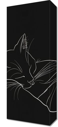 Obraz z serii minimalistyczne zatytułowany Nocny Spokój przedstawia subtelnie zarysowanego kota głęboko pogrążonego we śnie, umieszczonego na tle czarnej, nieskończonej przestrzeni. Białe linie delikatnie kreślą kształt zwierzęcia, uwypuklając jego spokojną postawę i łagodne rysy twarzy. To proste, lecz wyraziste dzieło sztuki przepełnione jest spokojem i elegancją, a kontrastowy czarno-biały motyw przyciąga wzrok i wprowadza do wnętrza atmosferę tajemniczości i wyciszenia. Idealny dla przestrzeni, które są azylem relaksu i odpoczynku, jak sypialnie czy zakątki do medytacji.