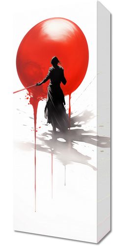 Obraz z serii motywy wschodnie zatytułowany Samotny Samuraj przedstawia postać w tradycyjnym japońskim stroju, samuraja, w dynamicznej pozie z mieczem, z potężnym, czerwonym słońcem w tle. Design wykorzystuje silne kontrasty kolorystyczne - biel i czerń z akcentami czerwieni, aby stworzyć dramatyczną i potężną wizualizację. Przedstawienie samuraja w akcji z rozpryskami tuszu naokoło podkreśla ruch i energię, a jednocześnie oddaje hołd tradycyjnym technikom japońskiego malarstwa atramentem. Ten obraz to doskonały wybór dla miłośników japońskiej kultury i sztuk walki, idealny do wnętrz nowoczesnych jak i tych o bardziej klasycznym charakterze.