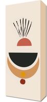 Obraz z serii boho zatytułowany Spójna Refleksja.Grafika ukazuje abstrakcyjną kompozycję geometrycznych kształtów w spójnej, ciepłej palecie barw, sugerującą delikatność i równowagę. Cechą charakterystyczną są wydłużone, smukłe linie wychodzące z półkola na górze, które mogą przypominać promienie słońca czy roślinne motywy. Ten obraz doskonale wpasuje się w nowoczesne i minimalistyczne przestrzenie, takie jak jadalnie, salony, a nawet kreatywne przestrzenie pracy, gdzie może stanowić spokojny punkt skupienia i inspirować do przemyśleń.