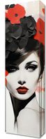 Obraz z serii wnętrza zatytułowany Kwiatowa Pasja. Magnetyczne spojrzenie kobiety zaakcentowane jest eksplozją czerwonych i czarnych kwiatów, które zdają się być przedłużeniem jej duszy. Jej soczyste czerwone usta są echem barwnych petali, które otaczają ją niczym aura. Splaty czerwieni na monochromatycznym tle dodają kompozycji dynamiki i nieprzewidywalności. Idealnie odnajdzie się w luksusowych apartamentach oraz w eleganckich salonach kosmetycznych.