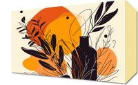 Obraz z serii minimalistyczne zatytułowany Jaskrawy Zachód. Na grafice widnieje silnie stylizowany motyw roślinny, gdzie czarne sylwetki roślin kontrastują z jaskrawo pomarańczowym i żółtym tłem, przypominającym zachodzące słońce. W tle pojawiają się delikatne, abstrakcyjne linie i kształty, dodające kompozycji głębi i tekstury.Ten plakat doskonale wpasuje się w wnętrza ożywione roślinnością, zarówno te domowe, jak i komercyjne przestrzenie typu kawiarnie lub sklepy z roślinami. Jego ciepłe barwy będą wprowadzać przytulną atmosferę i mogą stanowić żywy akcent w przestrzeniach utrzymanych w naturalnej kolorystyce.