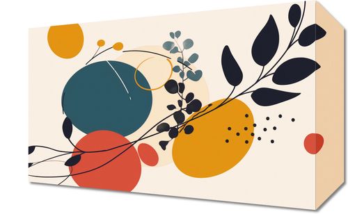 Obraz z serii minimalistyczne zatytułowany Kolaż Przyrody. Grafika ta łączy organiczne kształty i roślinne motywy z geometrycznymi figurami. Prezentuje bogate połączenie kolorów - od głębokiego granatu przez czerwień, musztardowy żółty po delikatne beże. Wyróżnia się przez obecność roślinnych sylwetek na pierwszym planie, które nadają kompozycji naturalnego charakteru.Ten obraz będzie wspaniałym dodatkiem do wnętrz, gdzie panuje spokój i równowaga. Jego stonowana, ale wyrazista kolorystyka sprawi, że będzie doskonałym uzupełnieniem przestrzeni skandynawskich, minimalistycznych, a nawet boho. Wydaje się być idealnym wyborem do salonu, sypialni lub miejsca pracy dla osób ceniących sobie połączenie sztuki i natury, gdzie mógłby stać się centralnym elementem dekoracyjnym.