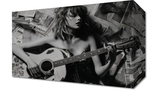 Obraz z serii pop art zatytułowany Młoda Gitarzystka. Portretuje młodą, energiczną gitarzystkę, zanurzoną w muzyce, otoczoną przez rozrzucone gazety. W monochromatycznej palecie szarości, uchwycono moment twórczego uniesienia artystki, jej pasję i pochłonięcie sztuką. W tle obrazu, strzępy artykułów i notatek muzycznych dodają głębi i kontekstu, sugerując bogatą historię i inspiracje. Obraz idealnie nadaje się do wnętrz vintage, studiów muzycznych, jak również jako inspirujący element w pokojach młodych twórców i wszędzie tam, gdzie chcemy podkreślić miłość do muzyki i jej uniwersalne przesłanie.