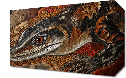 Obraz z serii abstrakcja zatytułowany Oko Jaszczurki. Fascynujące dzieło sztuki przedstawia zbliżenie na oko jaszczurki, które jest wykonane z niezwykłą dbałością o detale. Bogata faktura skóry zwierzęcia oraz użycie techniki przypominającej pointylizm sprawiają, że obraz zyskuje trójwymiarową głębię i realizm. Dynamiczna paleta barw, od głębokich odcieni brązu po złote i pomarańczowe akcenty, podkreśla dziką i pierwotną esencję natury. Obraz ten idealnie wpasuje się w dekoracje wnętrz o tematyce przyrodniczej, jak również stanowić może wyrazisty element w przestrzeniach edukacyjnych, takich jak sale biologiczne czy przyrodnicze, a także jako elegancki akcent w przestrzeniach mieszkalnych dla miłośników natury i dzikiej fauny.