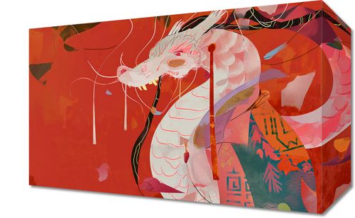 Obraz z serii motywy wschodnie zatytułowany Orientacyjny Smok, przedstawia kreatywną i nowoczesną interpretację tradycyjnego azjatyckiego smoka. Użyto bogatej palety czerwieni i pomarańczy, aby nadać energię i pasję scenie, a delikatne przerywane linie i formy abstrakcyjne dodają dziełu dynamiki i współczesnego charakteru. Smok, przedstawiony z otwartą paszczą i dzikim spojrzeniem, wydaje się ryczeć, a jego ciało płynnie przepływa przez kompozycję, tworząc wrażenie ruchu i siły. Tło, na którym pojawiają się subtelne nawiązania do wschodniej architektury i symboliki, wzmacnia kulturowe korzenie motywu. Ten obraz będzie idealnym uzupełnieniem współczesnych przestrzeni, które czerpią z tradycji i łączą je z nowoczesnym designem, takich jak salony w stylu fusion, przestrzenie kulturowe, a także restauracje i salony, gdzie chce się wprowadzić element orientalnego ducha.