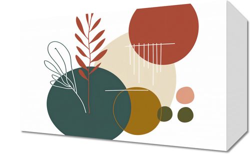 Obraz z serii minimalistyczne zatytułowany Rytm Warkotu. Ta grafika przedstawia stylizowane rośliny w ciepłych odcieniach czerwieni i zieleni, kontrastujące z geometrycznymi kształtami kół w spokojnych barwach beżu, żółci i głębokiej zieleni. Linie pionowe, wydające się być jak deszcz, dodają dynamiki i lekkości kompozycji.Ten obraz będzie się pięknie prezentować w przestrzeniach, które celebrują spokój i naturę. Doskonale wpasuje się w estetykę zen, ekologicznych wnętrz, czy w każdym pomieszczeniu, które ma na celu wprowadzenie elementów natury do domowego otoczenia. Będzie to świetny wybór dla tych, którzy szukają dekoracji ściennych do jasnych, przestronnych pomieszczeń, takich jak salony, jadalnie czy przestrzenie do medytacji.