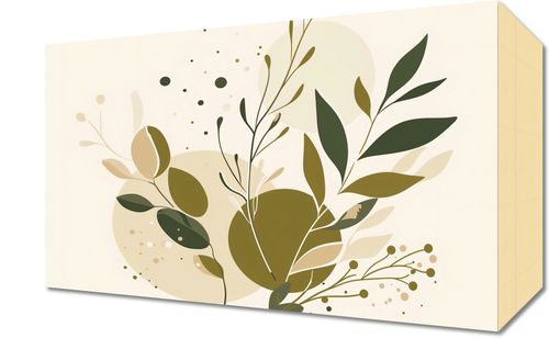 Obraz z serii minimalistyczne zatytułowany Szronowata Barwa. Przedstawia on delikatną kompozycję liści i gałązek w tonacjach zieleni i beżu, na łagodnym tle w pastelowych barwach, z dyskretnymi kropeczkami przypominającymi spokojny deszcz dodając elementu kontemplacji. Ten obraz wprowadzi harmonię i delikatność do każdego pomieszczenia. Jego stonowane kolory i prosta forma doskonale odnajdą się w przestronnych i jasnych wnętrzach, takich jak skandynawskie mieszkania, biura, czy salony spa.