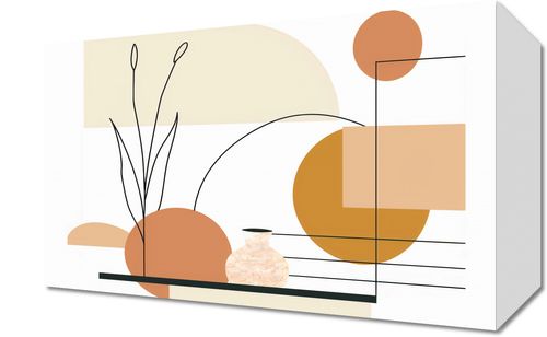 Obraz z serii boho zatytułowany Terrakotowy Krzyk.Obraz przedstawia misternie ułożoną kompozycję z geometrycznymi i organicznymi kształtami. Ujęte w stonowanej palecie barw terrakoty, beżu i czerni, delikatne linie roślin wynurzają się z minimalistycznego wazonu, a tło składa się z różnych form i kształtów, które tworzą poczucie głębi i równowagi.Ta grafika doskonale wpasuje się w nowoczesne, minimalistyczne wnętrza, które cenią sobie prostotę oraz wyrafinowanie. Może zdobić ściany w strefach wypoczynkowych, eleganckich salonach, a także stanowić punkt centralny w przestrzeniach takich jak jadalnie czy hol. Wyważony charakter plakatu sprzyja koncentracji i medytacji, co czyni go idealnym do pomieszczeń przeznaczonych do pracy kreatywnej lub odprężenia.