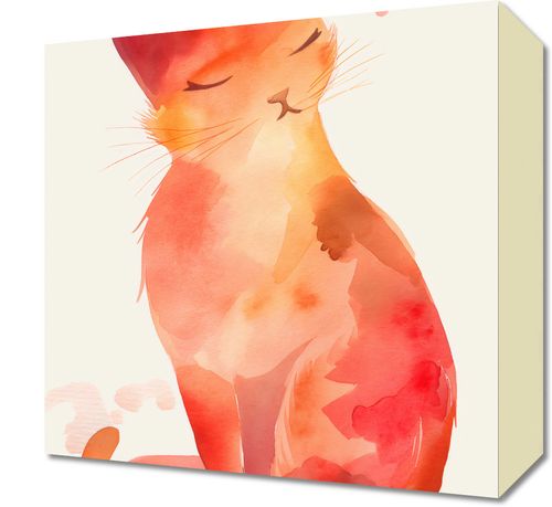 Obraz z serii wnętrza zatytułowany Akwarelowy Kot przedstawia akwarelową ilustrację spokojnego, zamyślonego kota. Kot zamyka oczy w zadowoleniu, a jego sylwetka płynnie przechodzi w bogatą paletę ciepłych odcieni czerwieni i pomarańczu, co nadaje dziełu wrażenie spokoju i ciepła. Delikatne plamy i rozmycia barw typowe dla akwareli tworzą wrażenie lekkości i przestrzeni, a jednocześnie podkreślają łagodność i spokojny nastrój obrazu. Jest to doskonały wybór dla tych, którzy pragną wprowadzić do swojego domu element relaksu i spokoju. Obraz ten idealnie wpasuje się w przestrzeń taką jak przytulna kawiarnia, zakątek do czytania w domowej biblioteczce lub pokój dziecinny, gdzie może inspirować do spokojnego snu i odpoczynku.