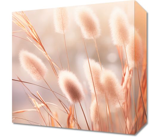 Obraz z serii natura zatytułowany Kwiaty Słońca. Na obrazie uchwycono delikatne, puszyste trawy, które delikatnie kołyszą się w ciepłym świetle zachodzącego słońca, nadając całości aura spokoju i harmonii. Pastelowa paleta barw, z dominującymi odcieniami różu i złota, przynosi uczucie łagodności i relaksu. Obraz ten będzie idealnym akcentem dla każdego wnętrza, poszukującego dodatku subtelności oraz naturalnej elegancji, szczególnie polecany jest do salonu spa, salonów kosmetycznych, poczekalni, a także jako ozdoba w domowych przestrzeniach wypoczynkowych czy sypialniach, gdzie chcemy wprowadzić elementy relaksującej natury.