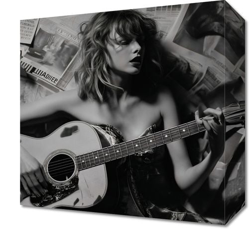 Obraz z serii pop art zatytułowany Młoda Gitarzystka. Portretuje młodą, energiczną gitarzystkę, zanurzoną w muzyce, otoczoną przez rozrzucone gazety. W monochromatycznej palecie szarości, uchwycono moment twórczego uniesienia artystki, jej pasję i pochłonięcie sztuką. W tle obrazu, strzępy artykułów i notatek muzycznych dodają głębi i kontekstu, sugerując bogatą historię i inspiracje. Obraz idealnie nadaje się do wnętrz vintage, studiów muzycznych, jak również jako inspirujący element w pokojach młodych twórców i wszędzie tam, gdzie chcemy podkreślić miłość do muzyki i jej uniwersalne przesłanie.