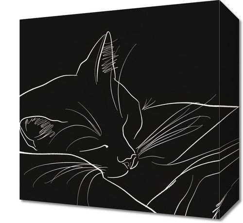 Obraz z serii minimalistyczne zatytułowany Nocny Spokój przedstawia subtelnie zarysowanego kota głęboko pogrążonego we śnie, umieszczonego na tle czarnej, nieskończonej przestrzeni. Białe linie delikatnie kreślą kształt zwierzęcia, uwypuklając jego spokojną postawę i łagodne rysy twarzy. To proste, lecz wyraziste dzieło sztuki przepełnione jest spokojem i elegancją, a kontrastowy czarno-biały motyw przyciąga wzrok i wprowadza do wnętrza atmosferę tajemniczości i wyciszenia. Idealny dla przestrzeni, które są azylem relaksu i odpoczynku, jak sypialnie czy zakątki do medytacji.