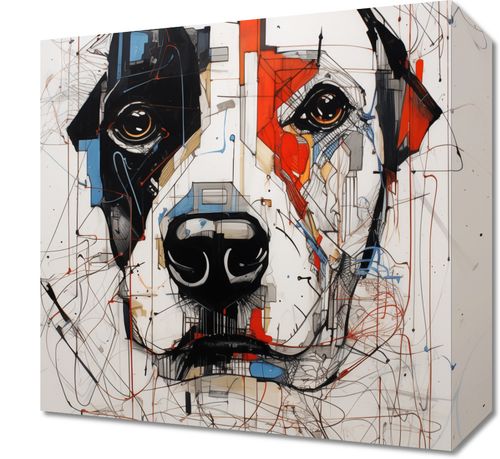 Obraz z serii abstrakcja zatytułowany Przyrysowany Psiak. Ta innowacyjna grafika przedstawia portret psa w stylu abstrakcyjnym, złożonym z kolorowych, geometrycznych kształtów i dynamicznych linii. Wyrafinowane połączenie street artu i sztuki współczesnej nadaje tej pracy wyjątkowy charakter. Plakat ten jest wyrazem artystycznej interpretacji więzi między ludźmi a ich zwierzęcymi towarzyszami, idealny dla miłośników psów i miłośników unikalnej sztuki miejskiej, świetnie nadaje się do nowoczesnych przestrzeni mieszkalnych, studiów artystycznych, czy jako centralny punkt w galeriach.