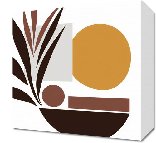 Plakat z serii minimalistyczne zatytułowany Stylizacja Roślin. Prezentuje on stylizowaną kompozycję roślinnych elementów i geometrycznych kształtów, wykorzystując ciepłą paletę brązów, beżów i głęboką ochrę. Proste formy tworzą spokojną, ale wyraźną grafikę, która wprowadza poczucie równowagi i spokoju. Ten obraz doskonale nada się do wnętrz w stylu mid-century modern, skandynawskich lub innych minimalistycznych przestrzeni, gdzie natura jest kluczowym elementem dekoracyjnym. Jego ziemiste barwy mogą dodać ciepła i naturalnego charakteru do każdego pomieszczenia, od salonu po spokojny kącik czytelniczy.