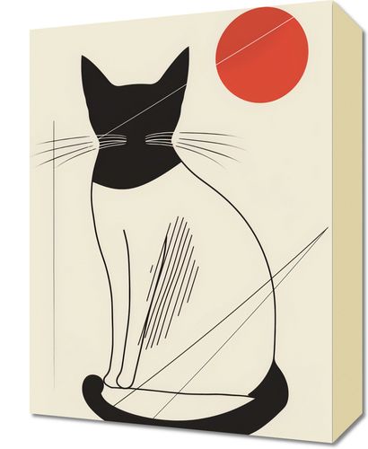 Obraz z serii minimalistyczne zatytułowany Czerwony Krąg. Obraz prezentuje stylizowaną sylwetkę czarnego kota, który siedzi tyłem, skupiony na czerwonym kręgu, który może symbolizować zachodzące słońce. Prostota formy i kontrastowe barwy tworzą spokojną, lecz sugestywną kompozycję. Cień kota i jego wyraziste wąsy dodają ilustracji charakteru i głębi. To dzieło sztuki jest idealne dla tych, którzy cenią sobie zarówno minimalizm, jak i symboliczne znaczenie w swoim otoczeniu. Obraz będzie pięknym akcentem w każdej przestrzeni, wnosząc odrobinę tajemnicy i spokoju. Idealnie pasuje do pomieszczeń o współczesnym wystroju, takich jak nowoczesne salony, sypialnie lub domowe biura, a także do miejsc, które są sanktuarium relaksu i kontemplacji.