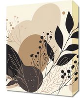 Obraz z serii minimalistyczne zatytułowany Harmonijka Przyrody. Ta grafika to estetyczna kompozycja abstrakcyjnych, organicznych kształtów i delikatnych motywów florystycznych w tonacji ziemi. Wykorzystanie różnych odcieni brązu, beżu oraz głębokiej czerni tworzy spokojną, ale i wyrafinowaną paletę barw. Kontrastowe, ciemne elementy florystyczne są pięknie zrównoważone przez jasne tło, nadając całości uczucie lekkości i elegancji.Jest to idealny wybór dla osób, które szukają subtelnego, ale wyrazistego elementu dekoracyjnego do swojego domu lub biura.