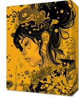 Obraz z serii motywy wschodnie zatytułowany Jedność prezentuje profil portretu młodej kobiety, którego kontury i przestrzeń wokół są wypełnione bogatym, złożonym motywem fauny i flory. Czarno-złota kolorystyka na tle w odcieniach musztardowego żółtego tworzy głęboki kontrast, który przyciąga wzrok i zmusza do refleksji. Włosy kobiety przechodzą w gęstą dżunglę roślin i zwierząt, symbolizując jedność z przyrodą. Wizualnie wyraziste i symbolicznie nasycone, dzieło artystyczne wydaje się idealne do wystroju nowoczesnych przestrzeni mieszkalnych lub miejsc publicznych, które chcą podkreślić związek z naturą i sztuką. Może być również doskonałym dodatkiem do galerii lub przestrzeni artystycznych, które cenią sobie oryginalność i głębię wizualną.