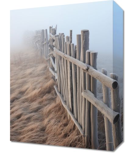 Obraz z serii pejzaże zatytułowany Mgła nad Wydmami. Prezentuje on eteryczny widok na drewniane ogrodzenie, które wiedzie przez poszarpane, suchą trawę wydm. Delikatna mgła otula scenę, nadając jej tajemniczość i spokój, a subtelne odcienie szarości i beżu tworzą uczucie miękkości i ciepła. Ten obraz idealnie oddaje atmosferę wyciszenia i rozmyślania, sprawiając, że jest doskonałym wyborem dla przestrzeni, które mają na celu uspokojenie i relaks, jak spa, pokoje medytacyjne, czy ciche kąciki w domach. To także piękny element dekoracyjny dla wnętrz inspirowanych naturą i spokojem przyrody.