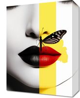 Obraz z serii abstrakcja zatytułowany Motyla Piękność. Ten obraz przedstawia twarz kobiety podzieloną na dwa kontrastujące segmenty: jeden w czerni i bieli, drugi w żywych kolorach z motylem na ustach. Ilustracja eksploruje temat dualizmu natury ludzkiej, piękna i jego zmienności. Obraz ten jest idealnym wyborem dla przestrzeni o współczesnym designie, takich jak salony piękności, studia artystyczne, a także jako wyrazisty element dekoracyjny w nowoczesnych domach.