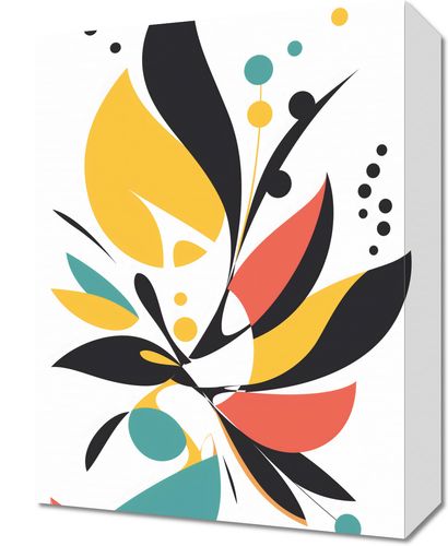 Obraz z serii minimalistyczne zatytułowany Radosny Bujak. To żywiołowe i radosne przedstawienie abstrakcyjnej roślinności, które łączy odważne kształty i przemyślaną paletę barw. Dominują tu intensywne odcienie żółcieni i czerwieni, zestawione z spokojnymi akcentami turkusu i czerń głębokiej nocy, przełamane żółtymi i niebieskimi akcentami w formie kropek, tworząc kompozycję pulsującą życiem i energią. Ten obraz to idealne rozwiązanie dla przestrzeni, które potrzebują odrobiny optymizmu i witalności. Doskonale sprawdzi się w przestronnych salonach, kreatywnych pracowniach, a nawet w kącikach dla dzieci, gdzie jego żywe kolory i dynamiczne formy mogą pobudzać wyobraźnię i dodawać energii.