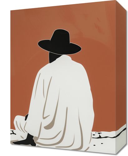 Obraz z serii abstrakcja zatytułowany Rozmyślania w Oddali przedstawia minimalistyczny wizerunek osoby siedzącej na plaży, odwróconej plecami do widza, z głową nakrytą szerokim kapeluszem. Postać odziana jest w płaszcz lub szatę w odcieniach bieli i beżu, co stwarza spokojny i medytacyjny nastrój. Tło w ciepłych, monochromatycznych odcieniach pomarańczu sugeruje zachód słońca, który maluje niebo i reflektuje się na spokojnych wodach, tworząc poczucie głębi i kontemplacji. Cień postaci rozciąga się na piasku, dodając kontrastu i związku z otoczeniem. Ten obraz jest symboliczny i może być interpretowany jako poszukiwanie spokoju, introspekcji lub bycia w zgodzie z naturą. Doskonale nadaje się do przestrzeni, które cenią spokój, takich jak pokoje do medytacji, gabinety terapeutyczne lub jako subtelny akcent w salonie.