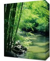 Obraz z serii natura zatytułowany Spokój Bambusów. Ukazuje on idylliczny zakątek przyrody, gdzie zielone pędy bambusa delikatnie zginają się nad błogim, spokojnie płynącym strumieniem. Gra światła i cienia na liściach bambusa tworzy wrażenie głębi i spokoju, zaś szemrząca woda dodaje uczucie świeżości i czystości. Ten obraz oddaje piękno i spokój odosobnionego zakątka natury, jest więc idealny dla przestrzeni relaksacyjnych takich jak spa, pokoje do medytacji lub jako ukojenie w zgiełku codzienności w domowych wnętrzach. To doskonała dekoracja dla tych, którzy pragną wprowadzić element natury i harmonii do swojego otoczenia.