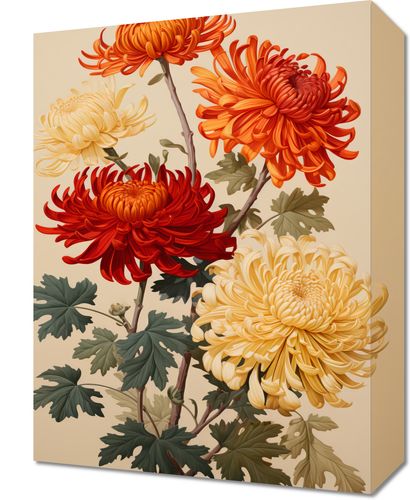Obraz z serii natura zatytułowany Tańczące Chryzantemy. Płynne, spirale płatków w odcieniach czerwieni, pomarańczy i kremu, tworzą dynamiczny ruch, który przyciąga wzrok i przywołuje uczucia radosnego zmysłowości. Zielone liście kontrastujące z głębokimi odcieniami kwiatów dodają głębokości i tekstury kompozycji. Ten wizualny spektakl podkreśla naturę chryzantemy jako symbolu odnowy i nieśmiertelności. Doskonale wpasuje się w eleganckie spa, luksusowe hotelowe lobby oraz wnętrza w stylu vintage.BLEJTRAMABlejtrama, na którą naciągane jest płótno, wykonana jest z naturalnego drewna sosnowego. To mocne i solidne drewno stanowi jedno z najbardziej ekologicznych rozwiązań, gdyż jest łatwe w obróbce. Dodatkowym atutem jest fakt, że sosna rośnie w Polsce, co gwarantuje lokalną obróbkę materiału. Obraz na takiej blejtramie jest trwały i wytrzymały. Ramki do zdjęć nie są wliczone w cenę wydruku. Jeśli chcesz je nabyć, prosimy o dokonanie zakupu oddzielnie.