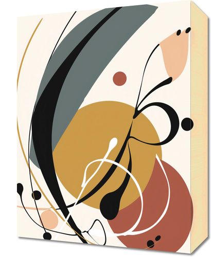 Obraz z serii minimalistyczne zatytułowany Taneczne Echa. Jest to wizualna symfonia abstrakcji, gdzie płynne linie i zaokrąglone kształty splatają się w zmysłową choreografię barw i form. Zestawienie głębokich tonów czerni i szarości z ciepłymi odcieniami miodowego żółcieni i spokojnej pomarańczy tworzy nastrój, który jest zarazem dynamiczny i łagodny. Przeplatanie się geometrycznych figur i organicznych linii wprowadza widza w niemal hipnotyczny stan kontemplacji.Ten obraz będzie idealnym dodatkiem do wnętrz, w których dominuje współczesny lub śródziemnomorski styl, wnosząc element finezyjnej sztuki i subtelnej energii. Naturalnie odnajdzie się w przestronnych salonach, kreatywnych przestrzeniach pracy oraz wszędzie tam, gdzie chce się dodać odrobinę elegancji bez nadmiernego hałasu wizualnego.