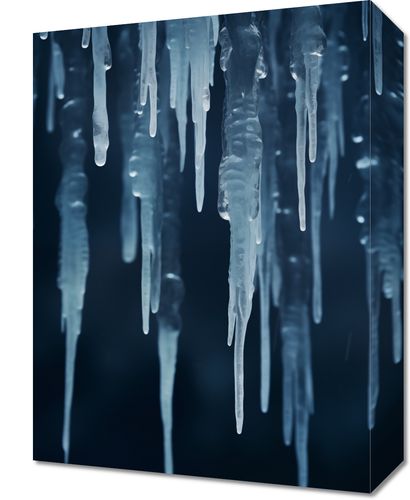 Obraz z serii natura zatytułowany Zimowy Szept. Ta hipnotyzująca kompozycja przedstawia rząd delikatnie zarysowanych sopli lodu, wyrastających z mrocznego, monochromatycznego tła. Gra świateł i cieni podkreśla przezroczystość i krystaliczną strukturę lodu, przypominając o zimowym chłodzie i jego skrytej, surowej piękności. Obraz ten stanowi idealną dekorację dla tych, którzy pragną dodać do swojego wnętrza element spokojnego zimowego krajobrazu, oferując uczucie chłodu i czystości. Doskonale nadaje się do nowoczesnych mieszkań, biur, a także jako elegancki akcent w przestrzeniach takich jak spa czy salony piękności, gdzie przywołuje atmosferę spokoju i odprężenia.